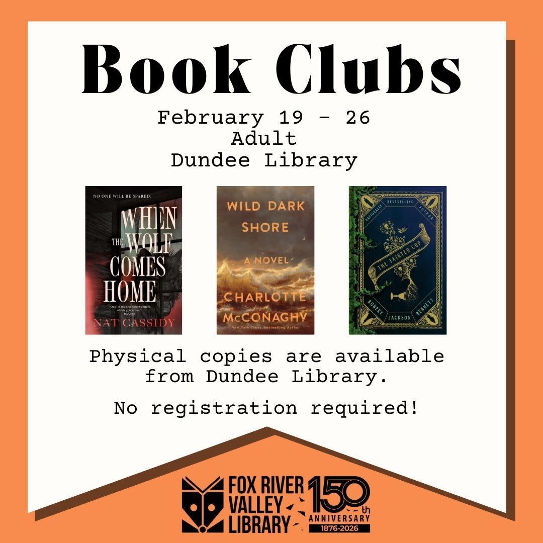 Whether you're in a reading slump or just want a sense of community, we have February book club meetings! No registration required. Our books are available to be picked up at Dundee Library, or digital/audiobooks can be accessed with your library card using Hoopla, Libby, or Boundless. For more information, visit: https://bit.ly/FRVPLDBookClubsFeb2026